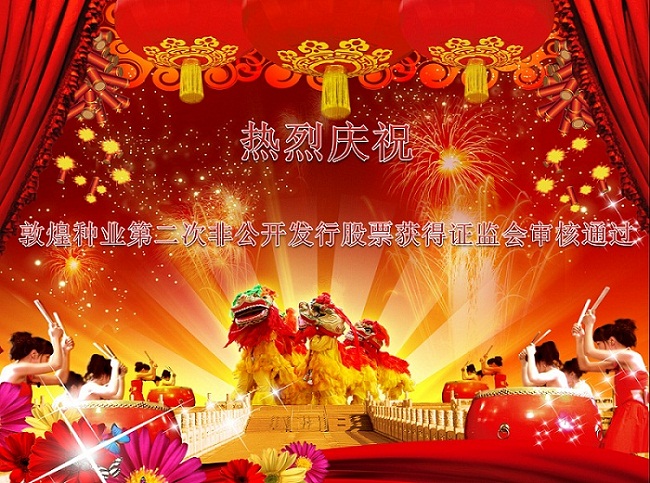 熱烈慶祝敦煌種業(yè)第二次非公開發(fā)行股票獲得證監(jiān)會(huì)審核通過